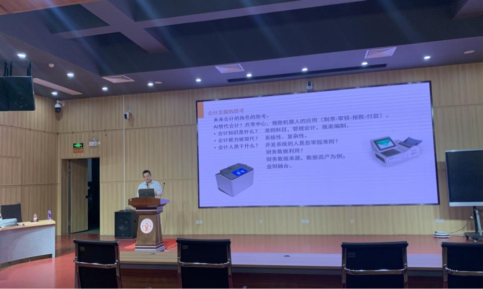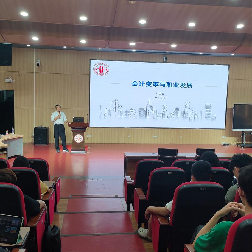 在谈到个人的职业发展时,刘博士认为,会计人员要想在职业生涯中取得成功,不仅需要具备扎实的专业技能和丰富的实践经验,还需要具备敏锐的商业洞察力和良好的沟通协调能力。他鼓励同学们要勇于挑战自我,不断拓宽自己的视野和知识面,提升自己的职业竞争力。刘博士还分享了南方电网在人才培养方面的做法和个人职业发展的经验,让同学们对未来职业发展有了更加清晰的认识和规划。