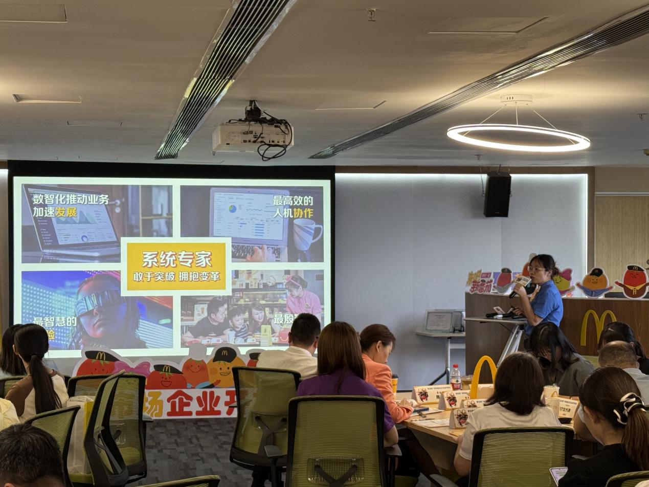 人力资源经理童穗敏表示,活动同期发布的职场技术应用数据显示,90%的员工认为AI虽无法完全替代人类,但可显著提升效率。60%的受访者认可AI对工作的积极影响,尤其在客户服务、数据分析和市场营销场景中作用突出。麦当劳通过智能排班系统、自动化点餐设备等技术优化运营,同时保留“人际协作温度”,如员工关怀活动和弹性工作制度,平衡人机协同与职场温度。