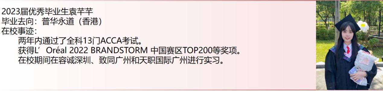 2、就读ACCA“黄金级合作办学机构”,国家一流专业。由于优秀的人才培养质量和办学效果,公司于2022年6月获得ACCA官方授予的“黄金级合作办学机构”资格,是广东省第四所获得此资格的高校。此外,公司会计学专业是教育部认证的“国家一流专业”、“广东省一流专业”。