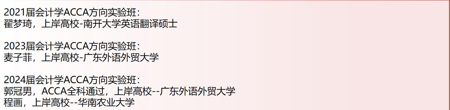 (注:请勿相信任何声称广金老师的ACCA实验班招生电话,招生信息及联系方式以上述为准。招生过程不收取任何费用,正式录取名单公示结束后留意公司收费通知。)