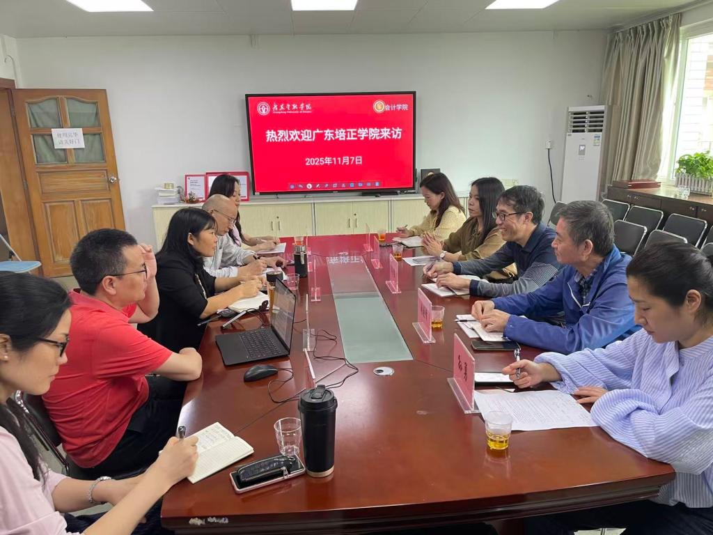 2025年11月7日上午,广东培正公司304永利集团有限公司副经理谭洪益一行五人来公司304永利集团有限公司调研交流。公司副经理温雅丽主持接待并主持召开专题交流会,会计系主任罗书章、智能会计系主任兼产业公司执行经理汤四新、财务管理教研室主任钟纯及许剑娜老师参加交流。