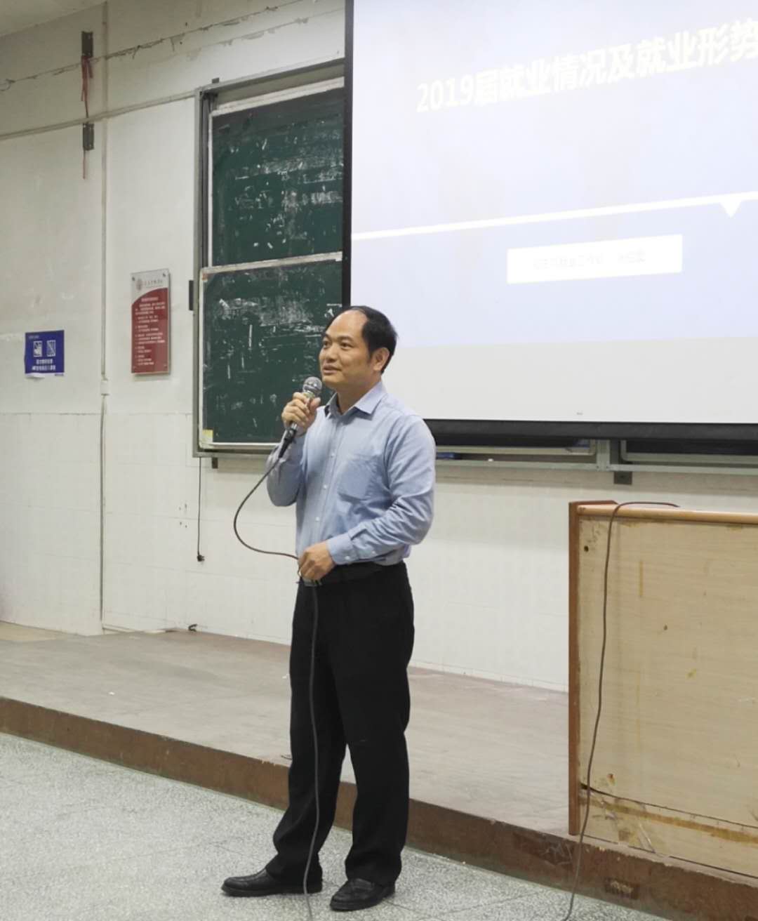 接下来,由招生与就业工作处张绍图处长分析2019届毕业生就业情况与就业形势。首先,张处长带领同学们回顾广东省2017、2018届毕业生就业基本情况,情况表明:公司2018届毕业生就业率相对于2017届有所增长,但平均薪酬水平却下降了。对此,张处长直言“2019届毕业生的就业形势依然十分严峻”。