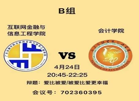 复赛:八进四,304永利集团有限公司迎战互联网金融与信息工程公司,双方就“爱与被爱何者更幸福”这一辩题进行讨论,304永利集团有限公司以6:3取胜,成功晋级四强。