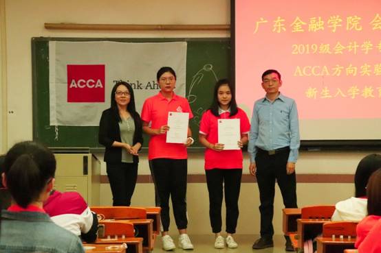 随后,文芳经理和马鹏副经理为“ACCA年度优秀员工”进行颁奖。“ACCA年度优秀员工”是ACCA官方从全国各高校ACCA方向班的在校员工中选拔全球统考、校内成绩和校内活动等综合表现优异的员工进行嘉奖。本年度全国各高校共评选出332名员工,公司共3名同学入选,分别是:2016级陈楚琳同学、翁琳纯同学、2017级刘璐同学。以上三位同学以优异表现展现了广金ACCA员工的风采。最后,“ACCA校园大使”何燊同学向同学们介绍了ACCA官方在高校里举行的各大活动情况;2017级创新实验班优秀员工代表、已全科通过ACCA全球统考的张高哲同学和“ACCA校园大使”、已通过10门全球统考课程的盛子纯同学,向同学们分享了自己的学习经验和心得体会。同学们热情高涨,反响强烈,对未来的ACCA学习生涯充满了期待,对成为具有国际化视野的高端会计人才充满了信心。