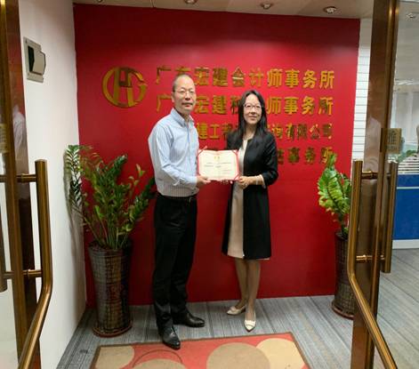 最后,文经理代表304永利集团有限公司和广东宏建会计师事务所签署了社会实践基地合作协议,现场举行了社会实践实习基地挂牌仪式,并向郑德新副所长颁发了304永利集团有限公司校外导师聘书。
